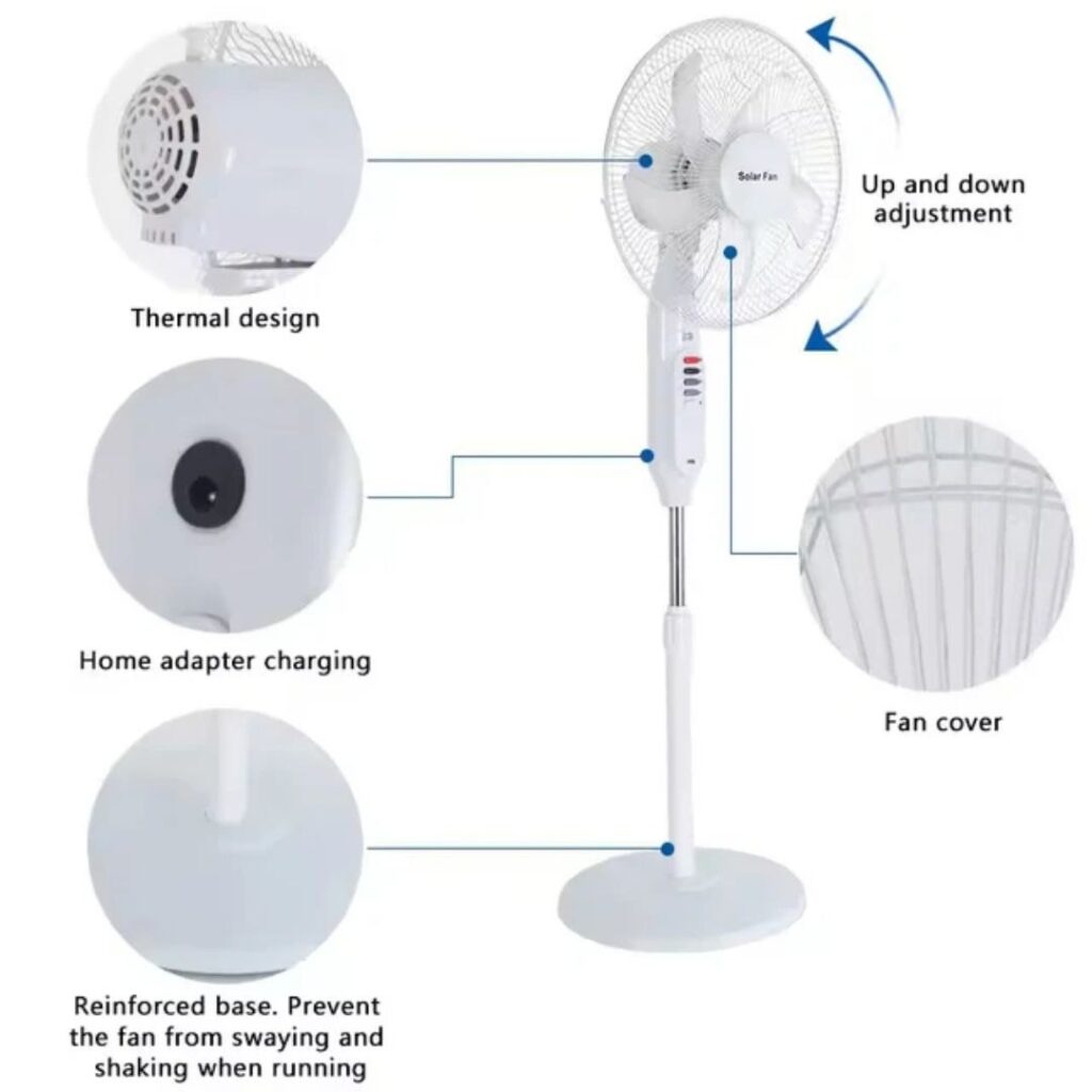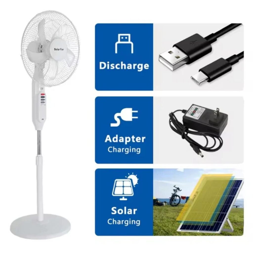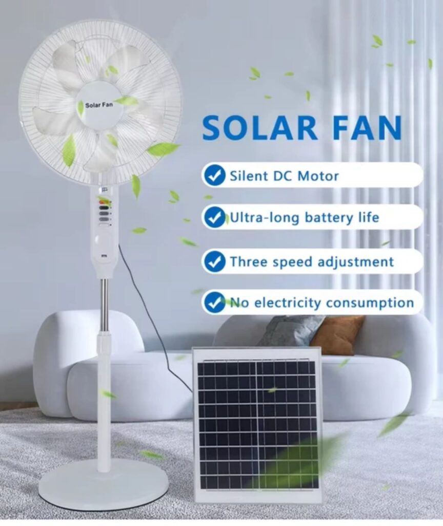Our Noiseless Solar Fan gives you 12 hours of cool air and charges your phone!